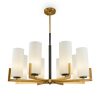 Metal frame. Arms are completed with glass elements. PVC lampshade is covered with white cloth.
