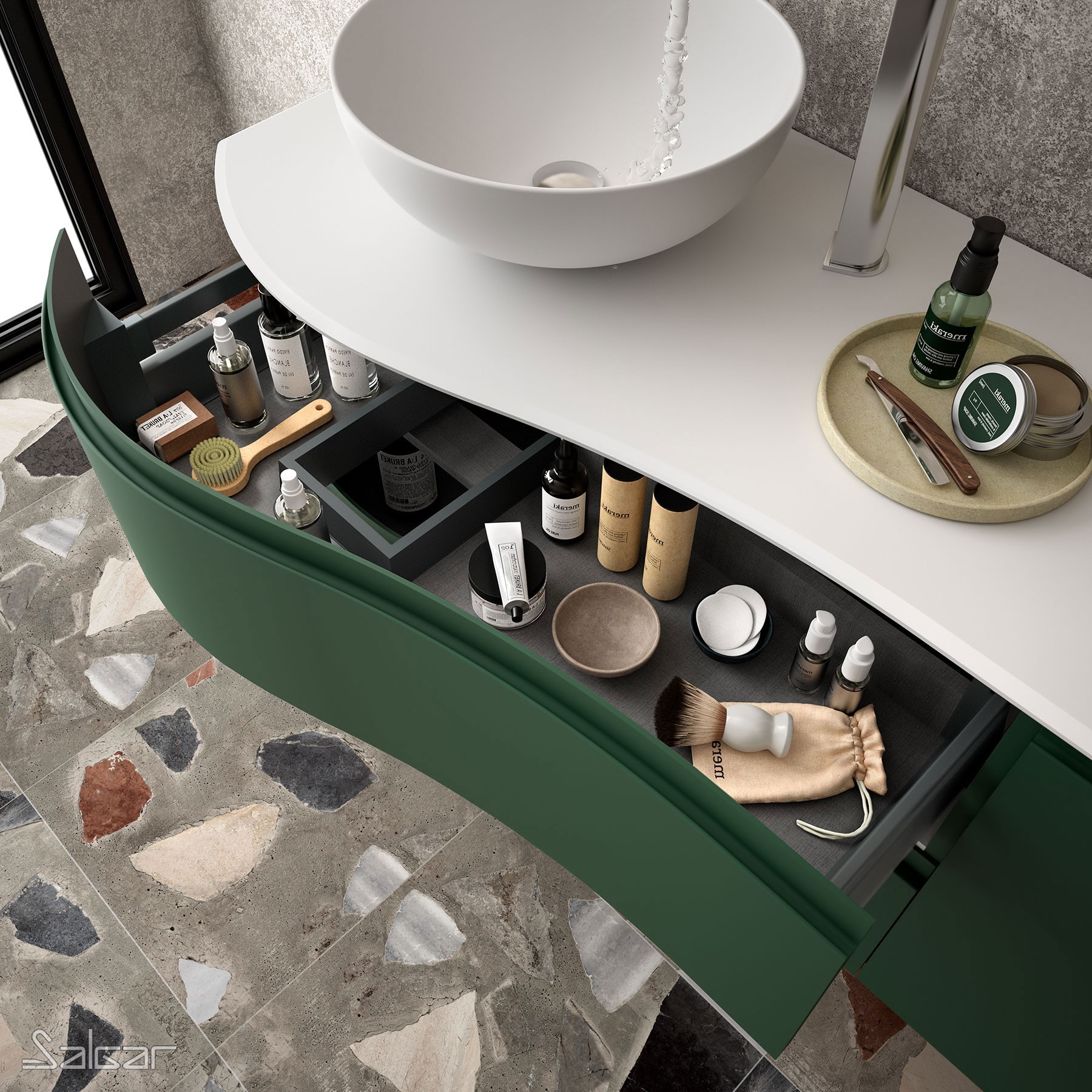 Basin MAM 900 storage unit on the right GLOSS WHITE MINERAL load without bottle trap or clicker waste 910 x 16 x 510 mm (It is available in the same sizes and combinations as the MAM series, 900 left, 900 right, 1200 left and 1200 right).