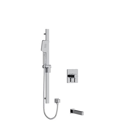 – Kit includes all components to create the perfect shower: rough, trim, multi-function hand shower and rail, bath spout.