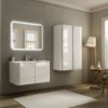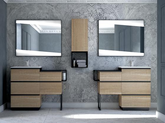 The Collection is based on the simplicity of the lines enhanced by the 45 degree angles and the functionality of the support surfaces, available in wood or metal finish with the practical side accessory holder. The black metal cubes and the wooden wall units, combined with the metal profiled mirrors with integrated double led, complete the Qubo line giving it the dynamism and versatility of the industrial style.