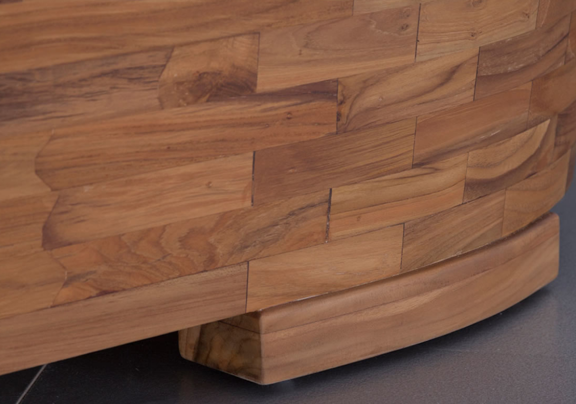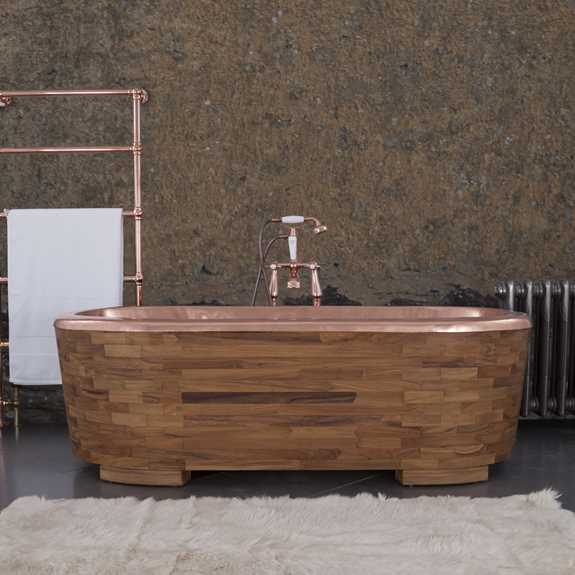 The Sampan has its own unique character with beautiful wood cladding and is then skilfully lined with hand shaped copper to complete the bold and elegant feel. A gorgeous double-ended bath, the wooden cladding is crafted from panels of solid teak which wrap around the bath creating its inviting look.