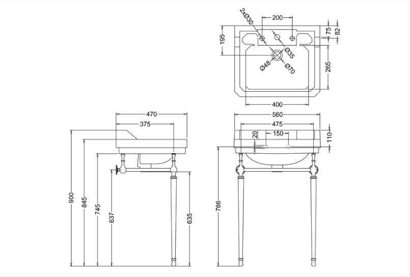 BASIN 560 X 470 MM WITH CHROME STAND EDWARDIAN by Burlington